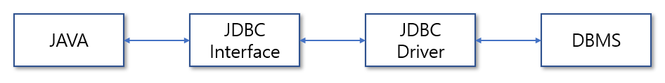 - JAVA에서 SQL 쿼리 문법을 실행함으로써 데이터베이스 내 자료를 관리하기 위한 API