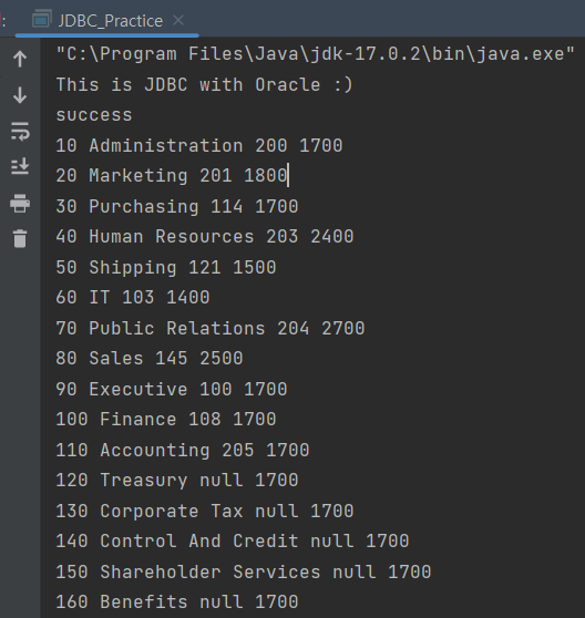 String sql = "SELECT * FROM DEPARTMENTS"; // SQL 쿼리문
