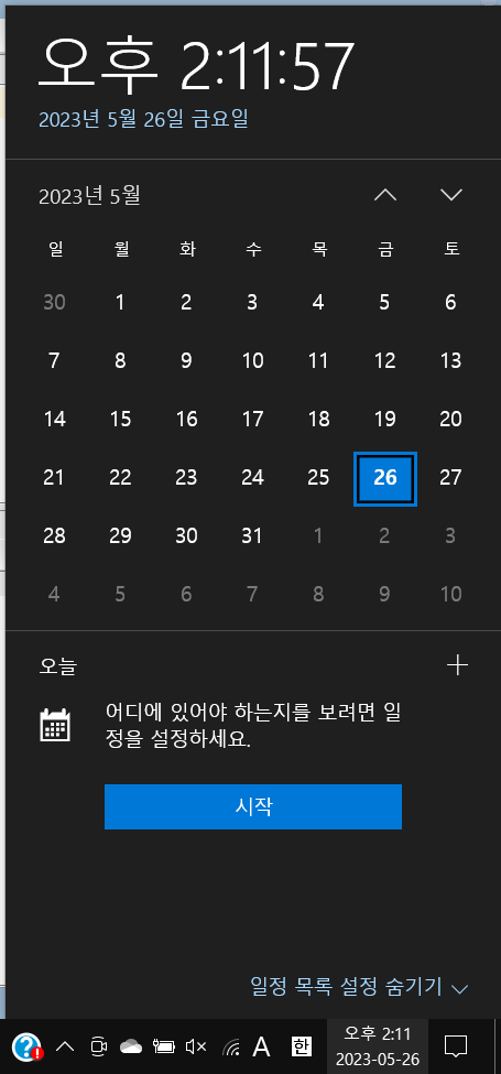 상단 이미지는 필자의 PC에서 확인할 수 있는 윈도우 기본 기능인 달력이다. 여기서 달력에 파란색으로 되어있는 부분은 오늘의 날짜를 표시해주는데 26일이 오늘 날짜임과 5월의 마지막 날은 31일이미로 오늘의 날짜와 해당 달의 마지막 날의 날짜 데이터를 확인할 수 있다.