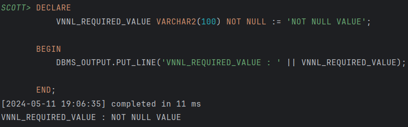 VNNL_REQUIRED_VALUE VARCHAR2(100) NOT NULL := 'NOT NULL VALUE';