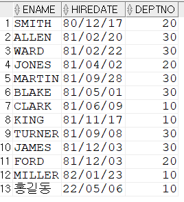 select ENAME, HIREDATE, DEPTNO from EMP;